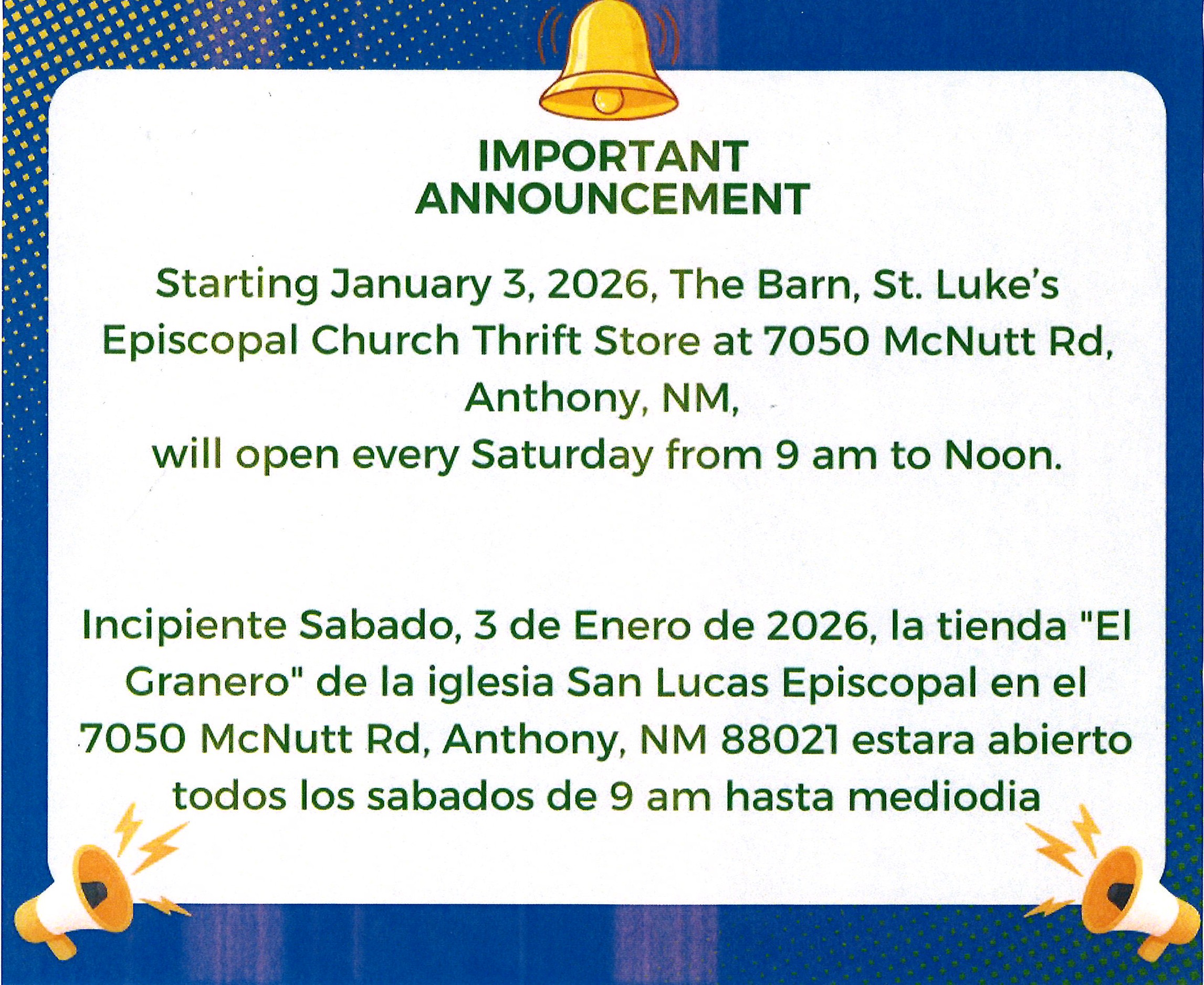 If you are interested in participating please contact Jane Cave at 575-874-3972 or our rector on the contact us page.
